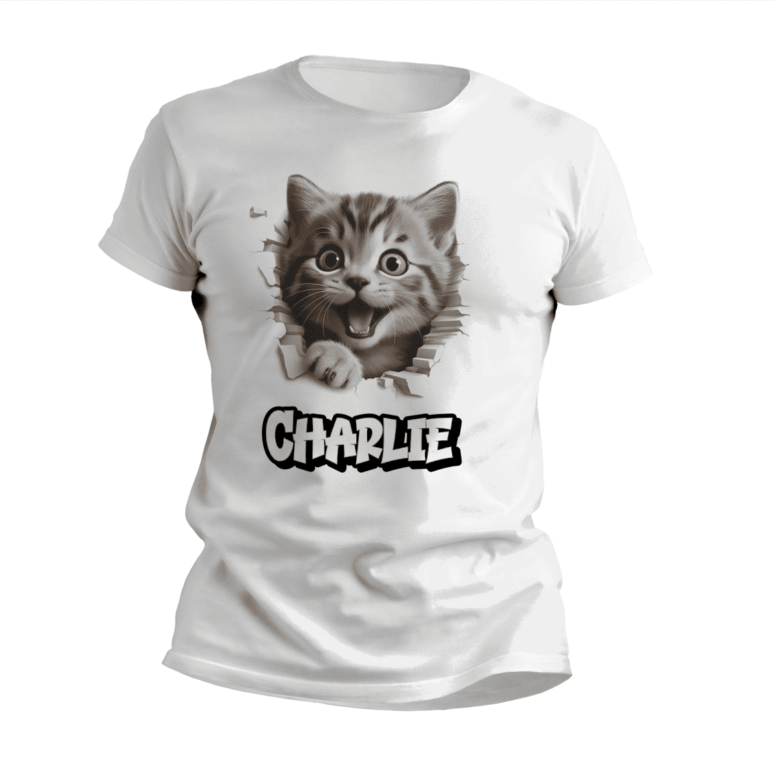 Remeras con Gatita Personalizando su Nombre 3D - 6304