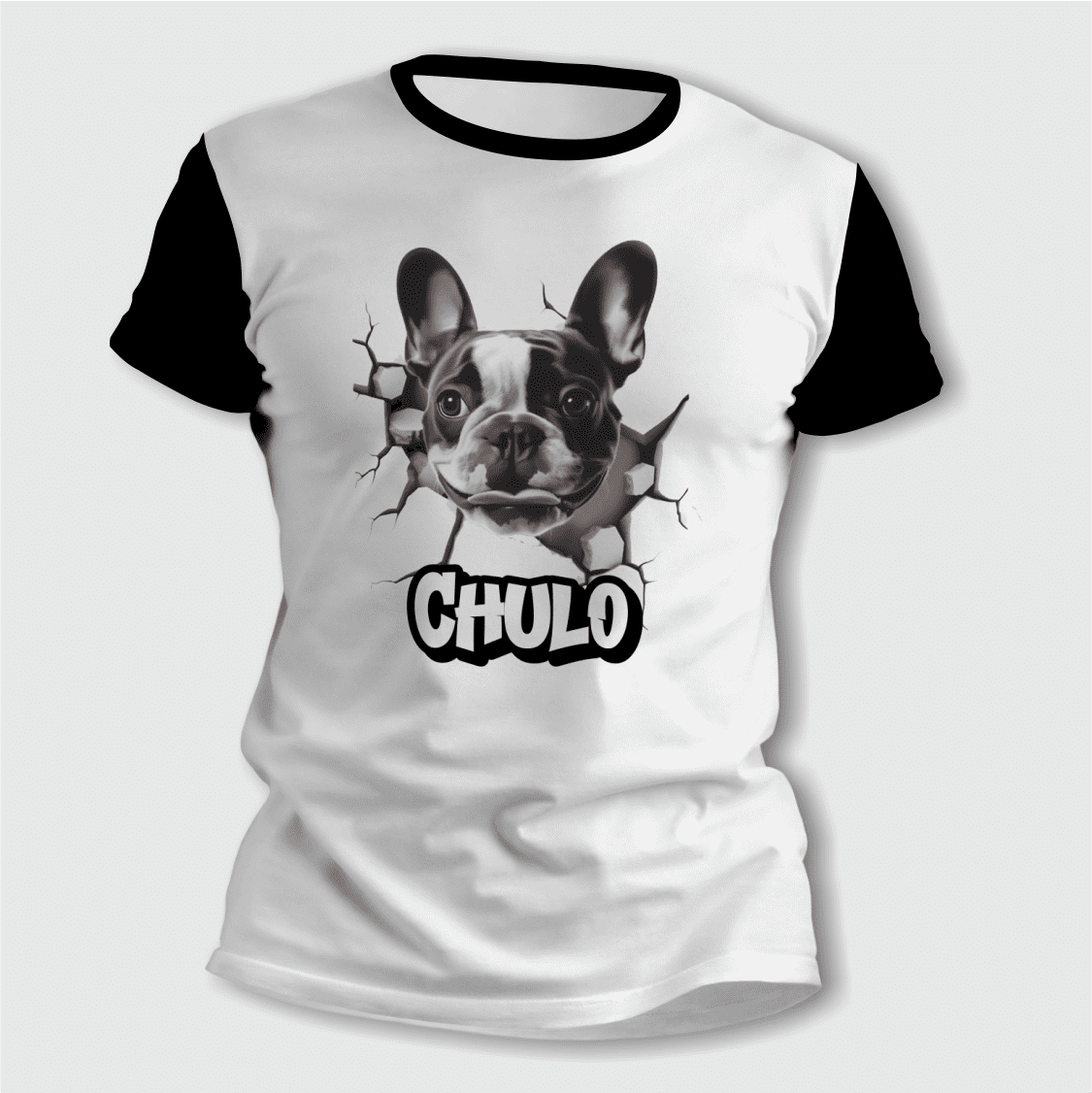 El diseño Cachorro Bulldog Francés con su Nombre Personalizado aporta un toque divertido y moderno, ideal para mostrar a quien querés mucho en una prenda original para usar o para regalar.
