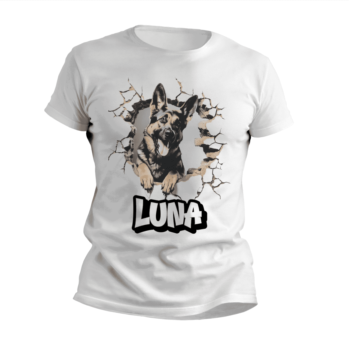 El diseño Perrito Ovejero Alemán Personalizando su Nombre aporta un toque divertido y moderno, ideal para mostrar a quien querés mucho en una prenda original para usar o para regalar.