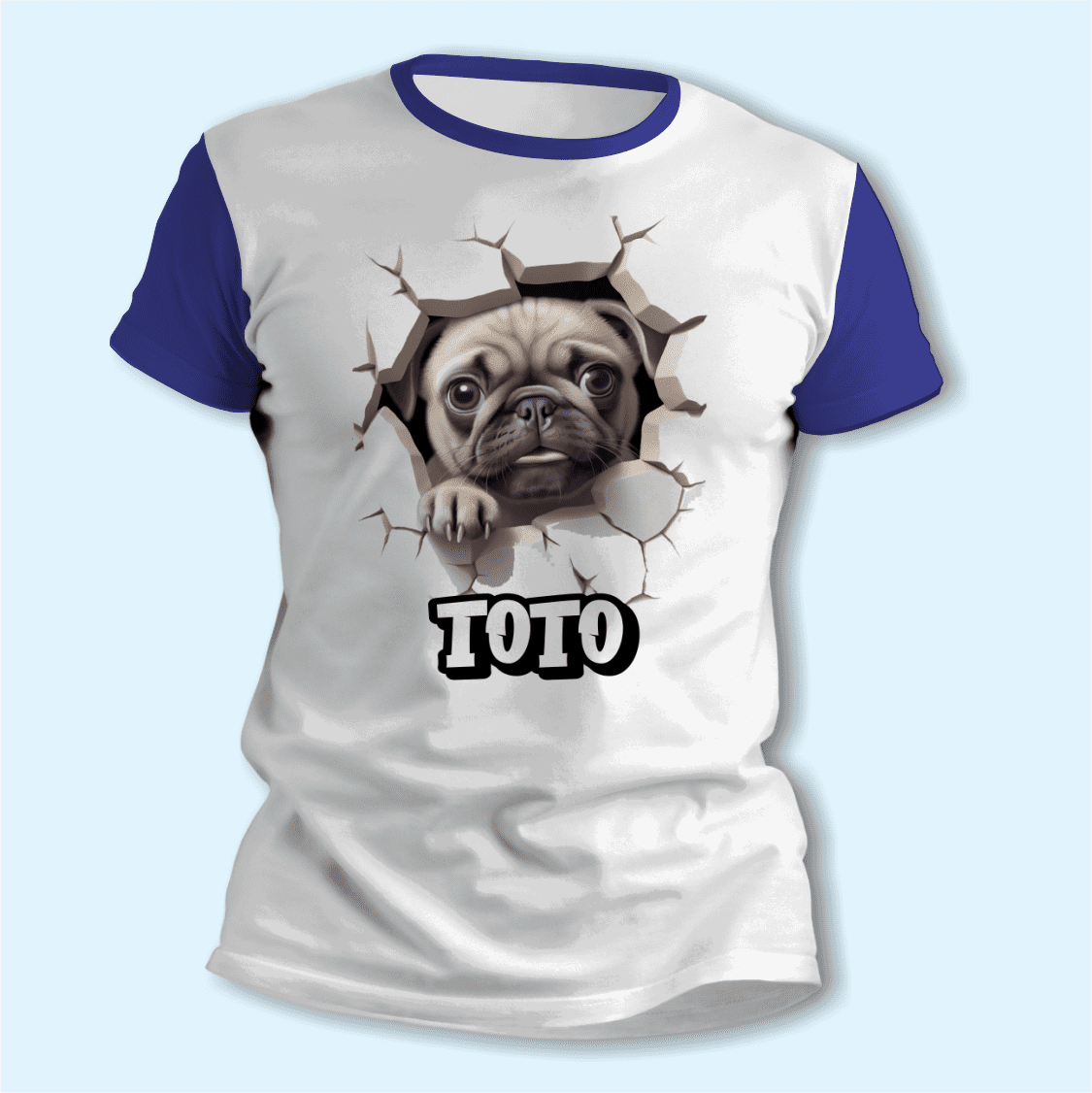 El diseño Cachorro Pug con su Nombre Personalizado aporta un toque divertido y moderno, ideal para mostrar a quien querés mucho en una prenda original para usar o para regalar.