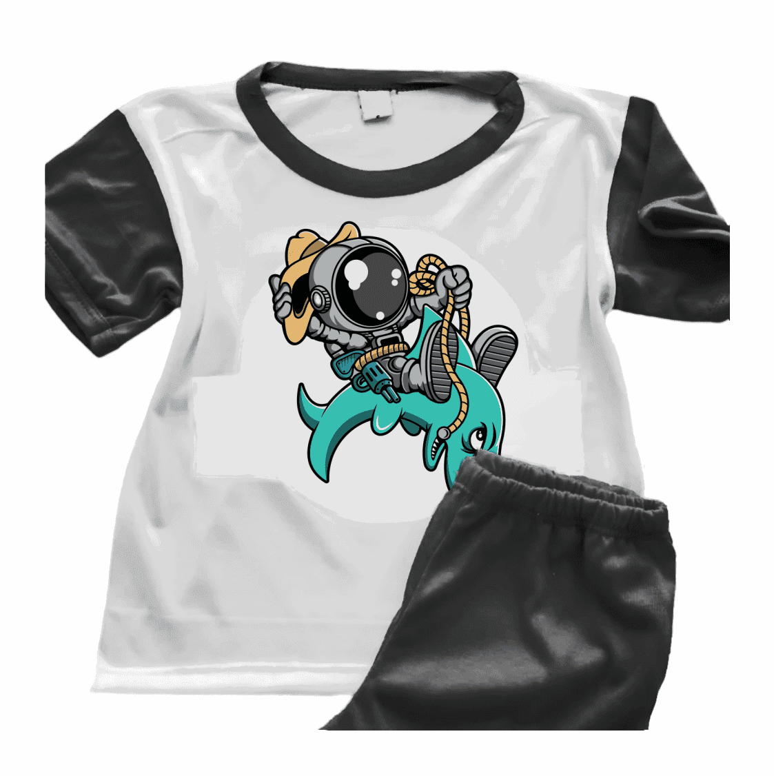 El diseño Astronauta con un Tiburón aporta un toque divertido y moderno, ideal para mostrar a quien querés mucho en una prenda original para usar o para regalar.