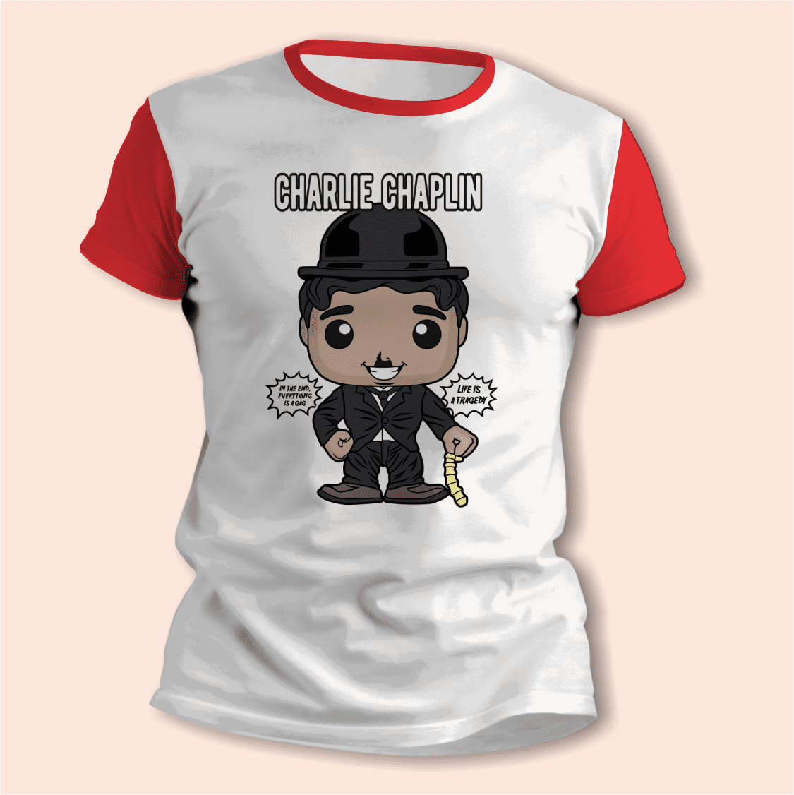 El diseño Películas con Charles Chaplin aporta un toque divertido y moderno, ideal para mostrar a quien querés mucho en una prenda original para usar o para regalar.