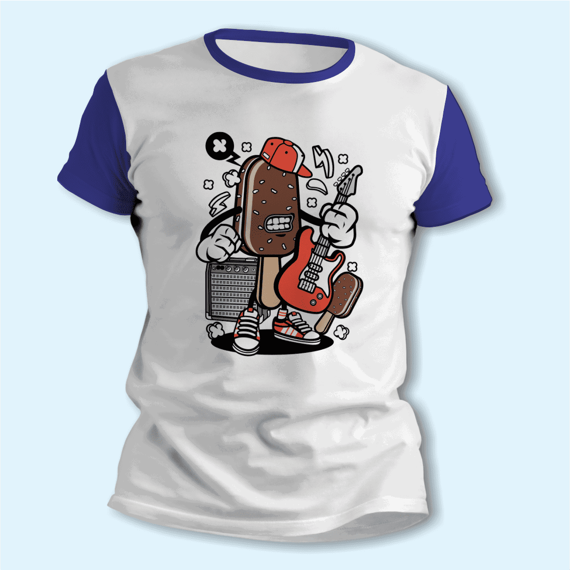 El diseño Caricatura de Helado Rockero aporta un toque divertido y moderno, ideal para mostrar a quien querés mucho en una prenda original para usar o para regalar.