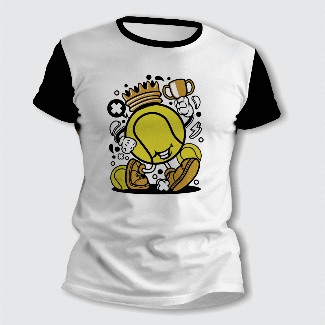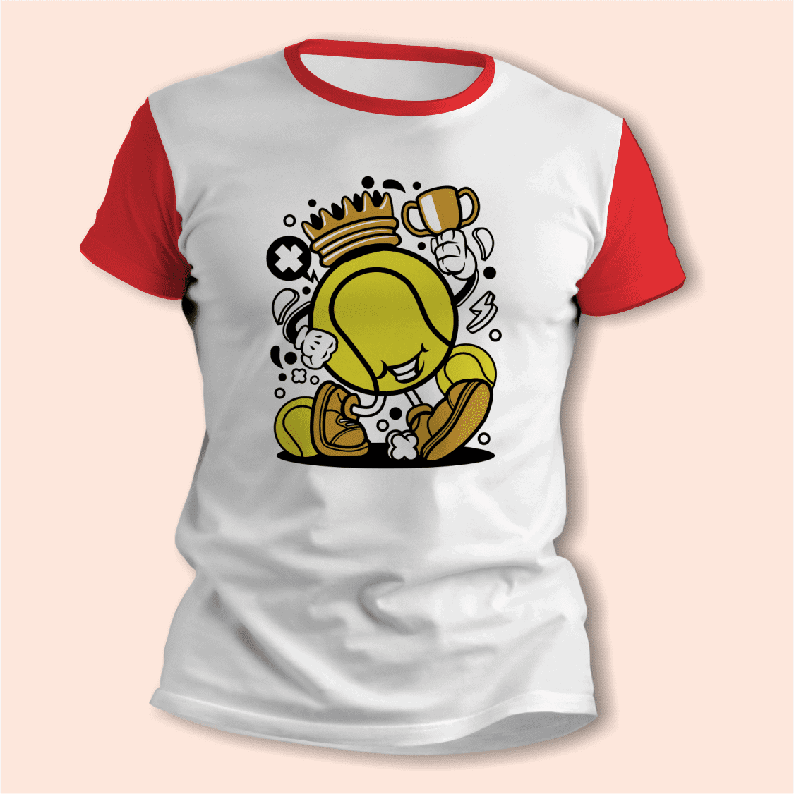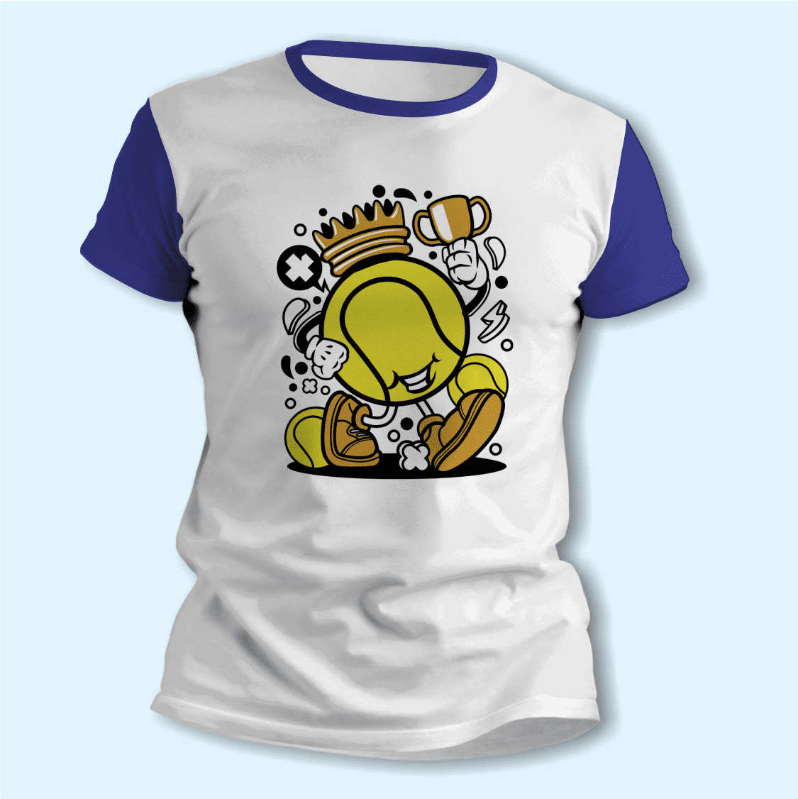 El diseño Tenis - Caricatura de Pelota Campeón aporta un toque divertido y moderno, ideal para mostrar a quien querés mucho en una prenda original para usar o para regalar.