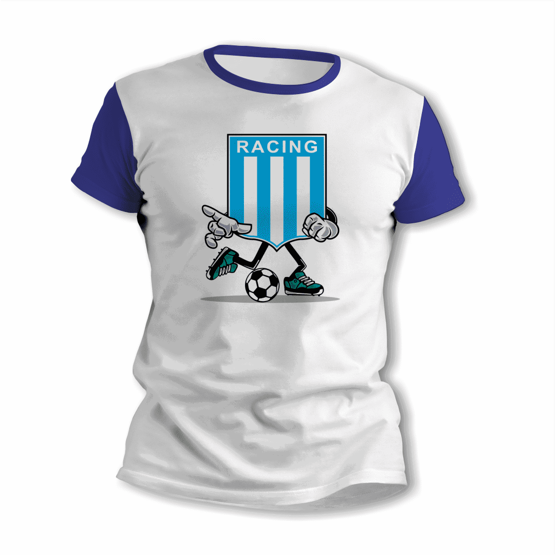 El diseño Futbol con Escudo Racing Club aporta un toque divertido y moderno, ideal para mostrar a quien querés mucho en una prenda original para usar o para regalar.