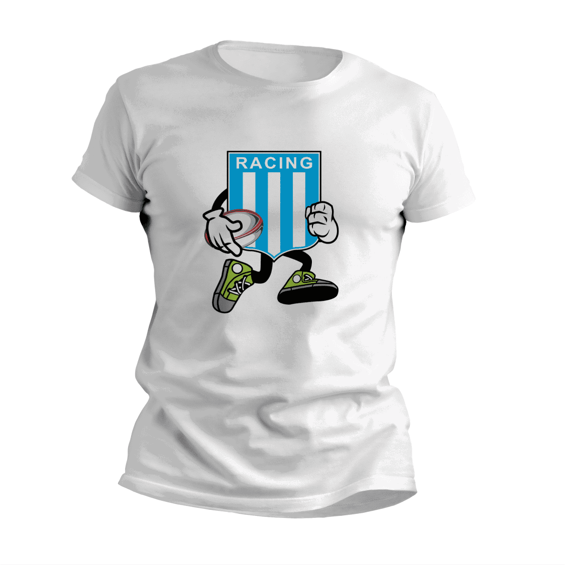 El diseño Rugby con Escudo Racing Club aporta un toque divertido y moderno, ideal para mostrar a quien querés mucho en una prenda original para usar o para regalar.