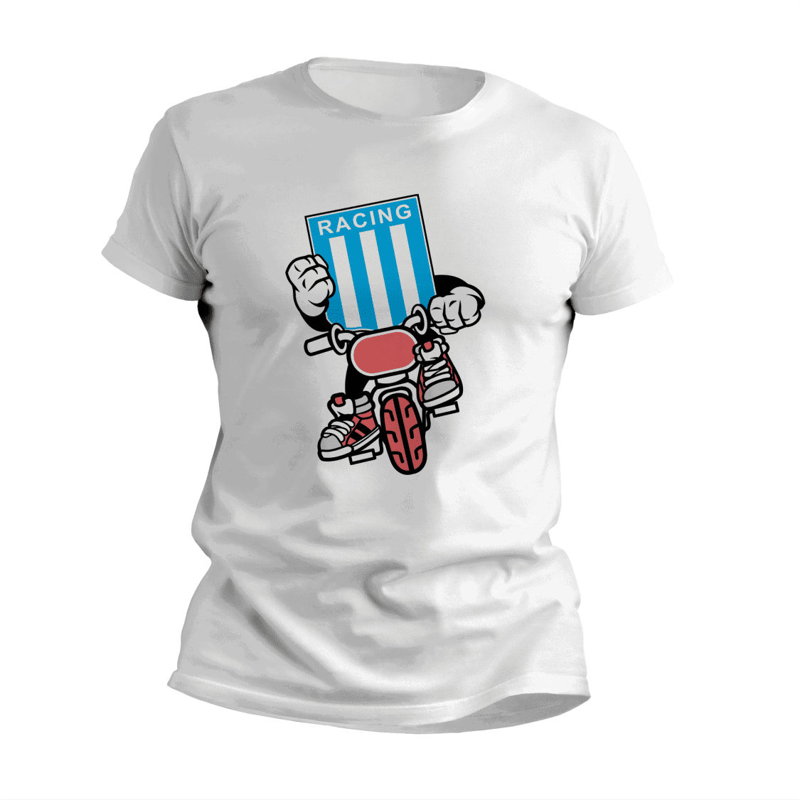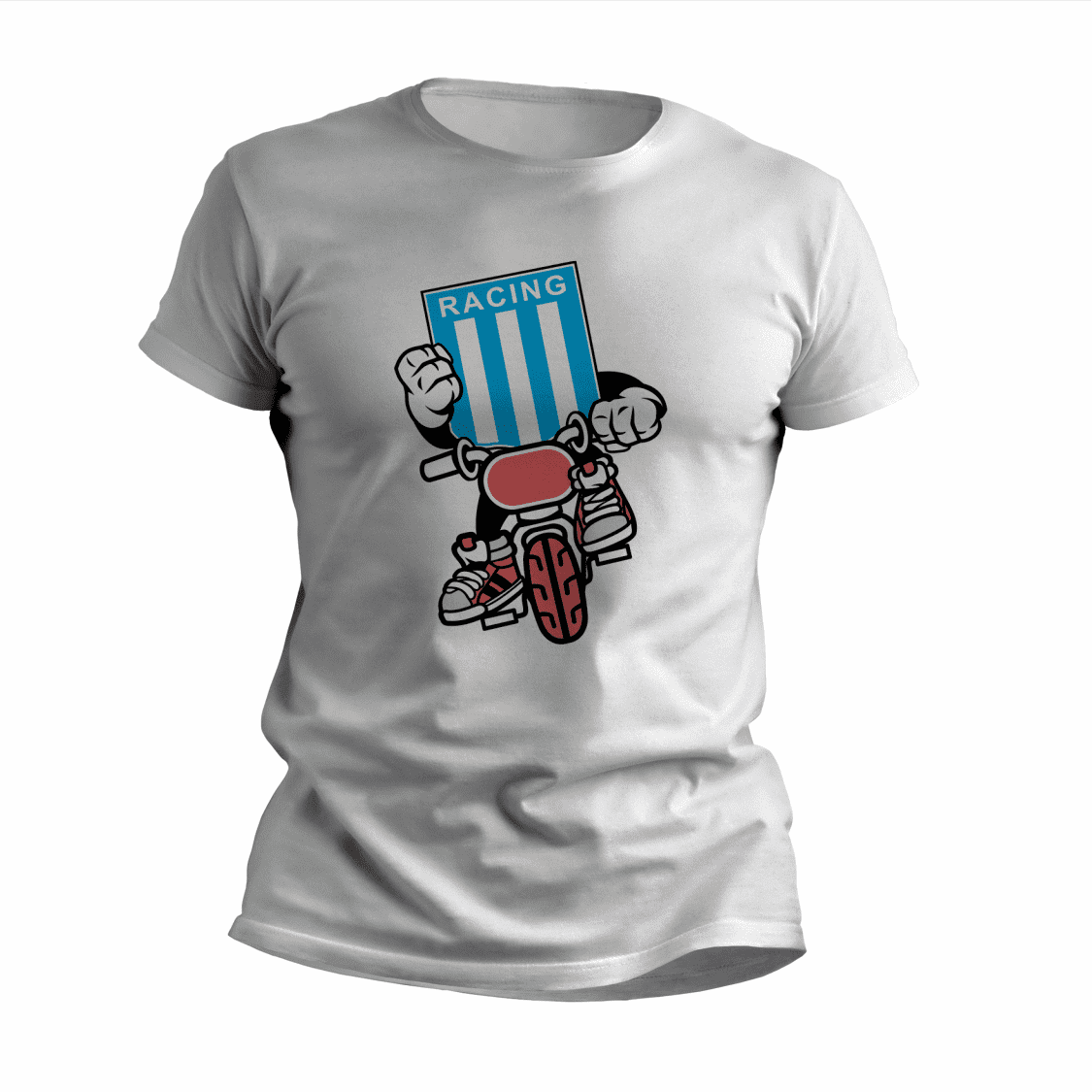 El diseño Ciclismo con Escudo Racing Club aporta un toque divertido y moderno, ideal para mostrar a quien querés mucho en una prenda original para usar o para regalar.