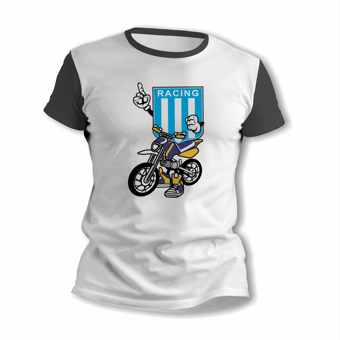 El diseño Motocross con Escudo Racing Club aporta un toque divertido y moderno, ideal para mostrar a quien querés mucho en una prenda original para usar o para regalar.