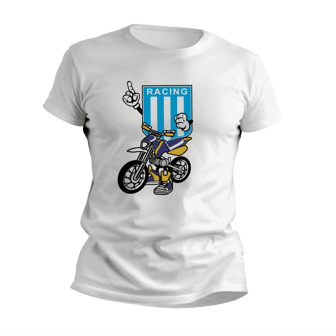 El diseño Motocross con Escudo Racing Club aporta un toque divertido y moderno, ideal para mostrar a quien querés mucho en una prenda original para usar o para regalar.
