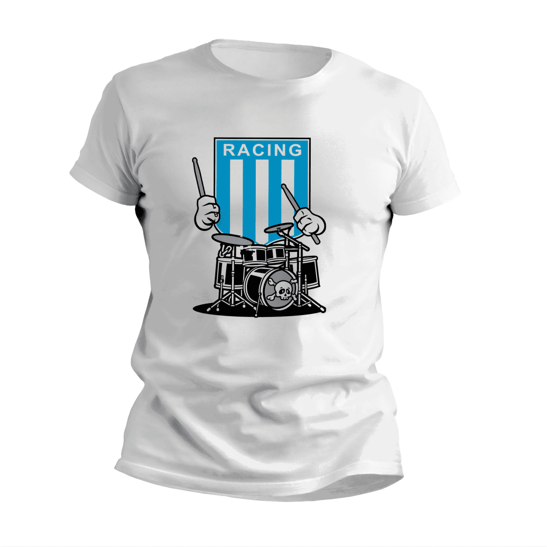 Remeras con Batería con Escudo Racing Club - Amálo, vivilo, usálo. - Infantiles y Adultos - Envíos a todo el país.