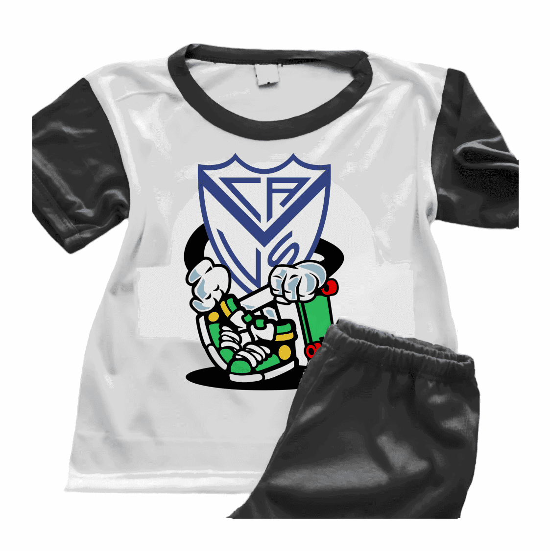 El diseño Skater con Escudo Velez Sarsfield aporta un toque divertido y moderno, ideal para mostrar a quien querés mucho en una prenda original para usar o para regalar.