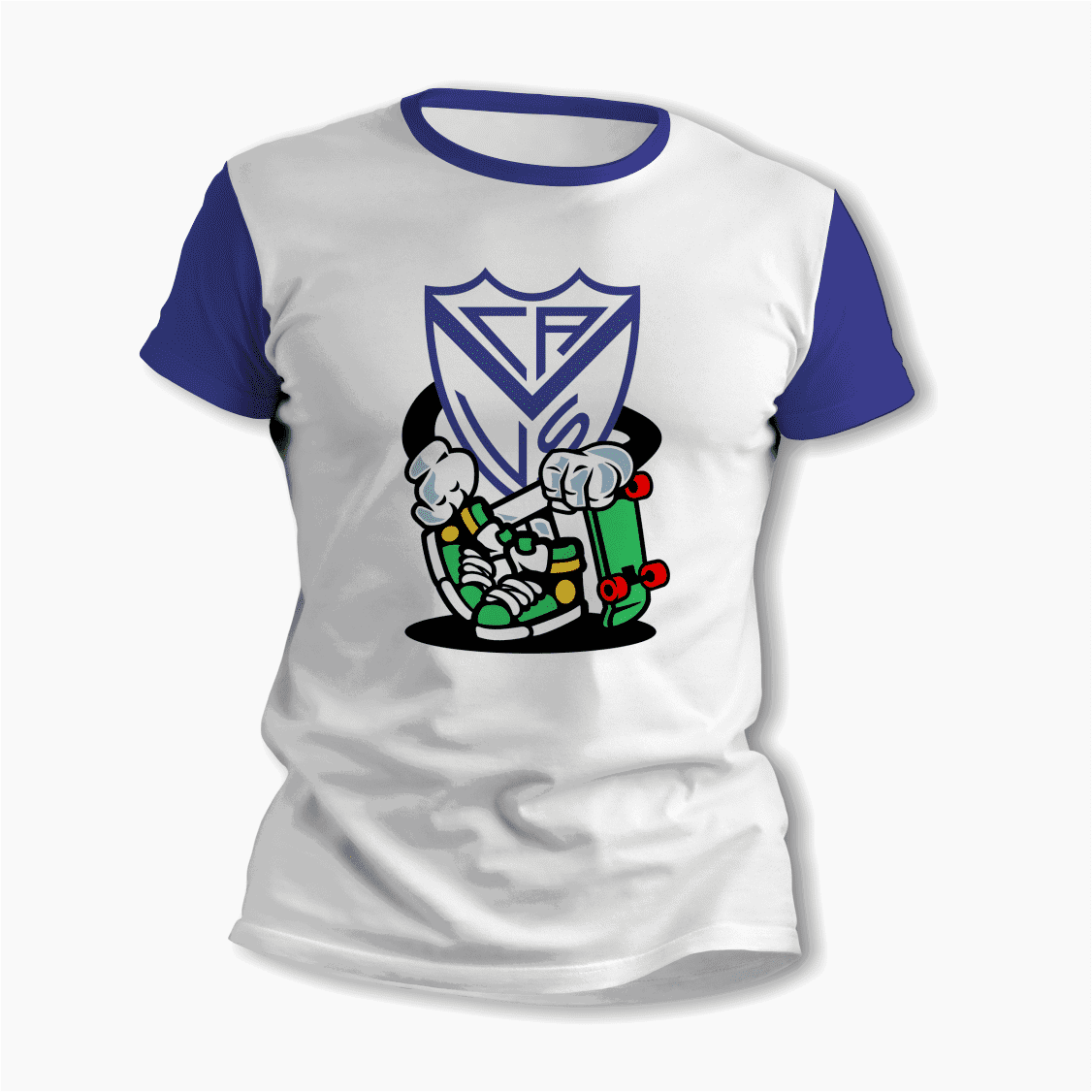 Remeras de Skater con Escudo Velez Sarsfield - Olvidáte de lo ordinario. - Infantiles y Adultos - Envíos a todo el país.