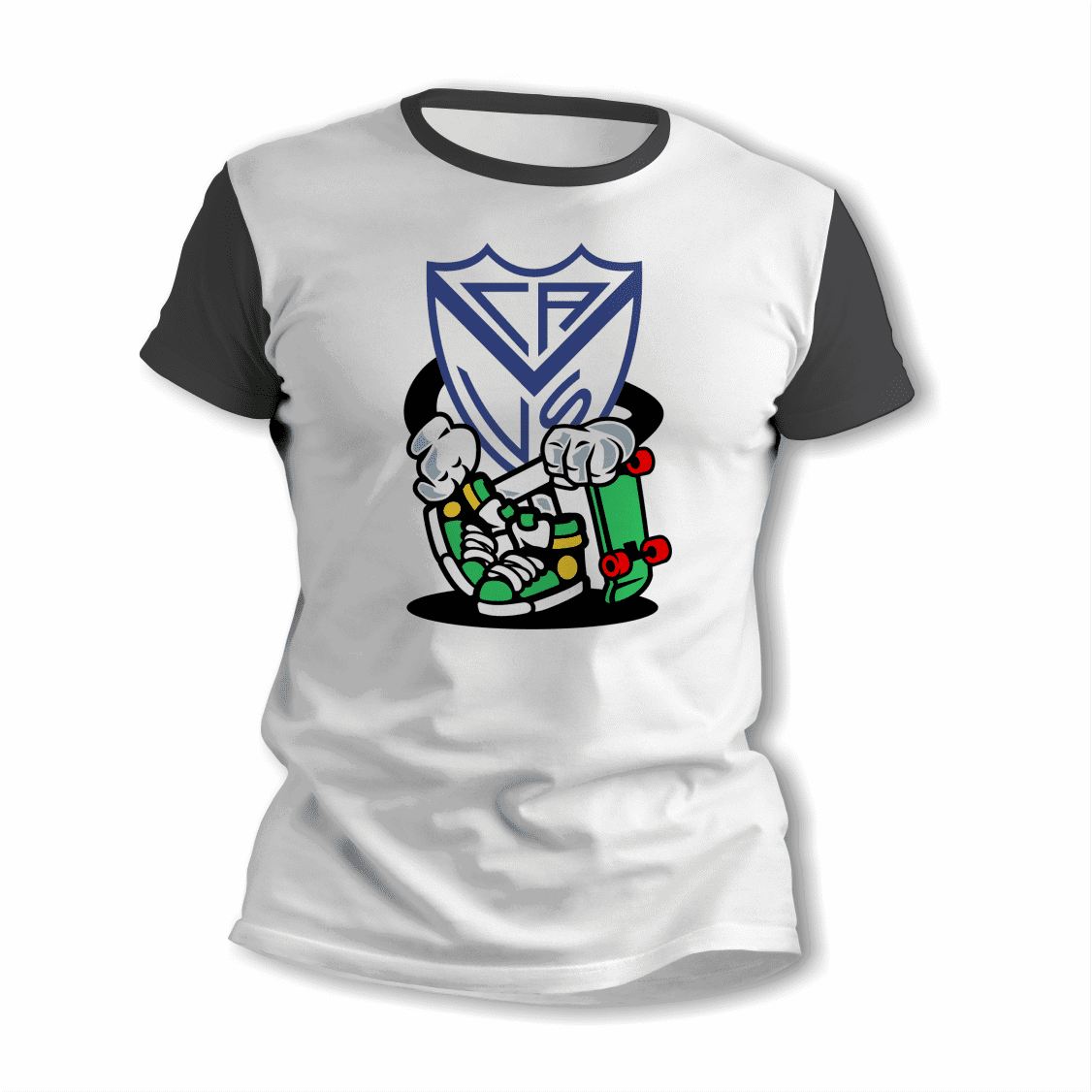 El diseño Skater con Escudo Velez Sarsfield aporta un toque divertido y moderno, ideal para mostrar a quien querés mucho en una prenda original para usar o para regalar.