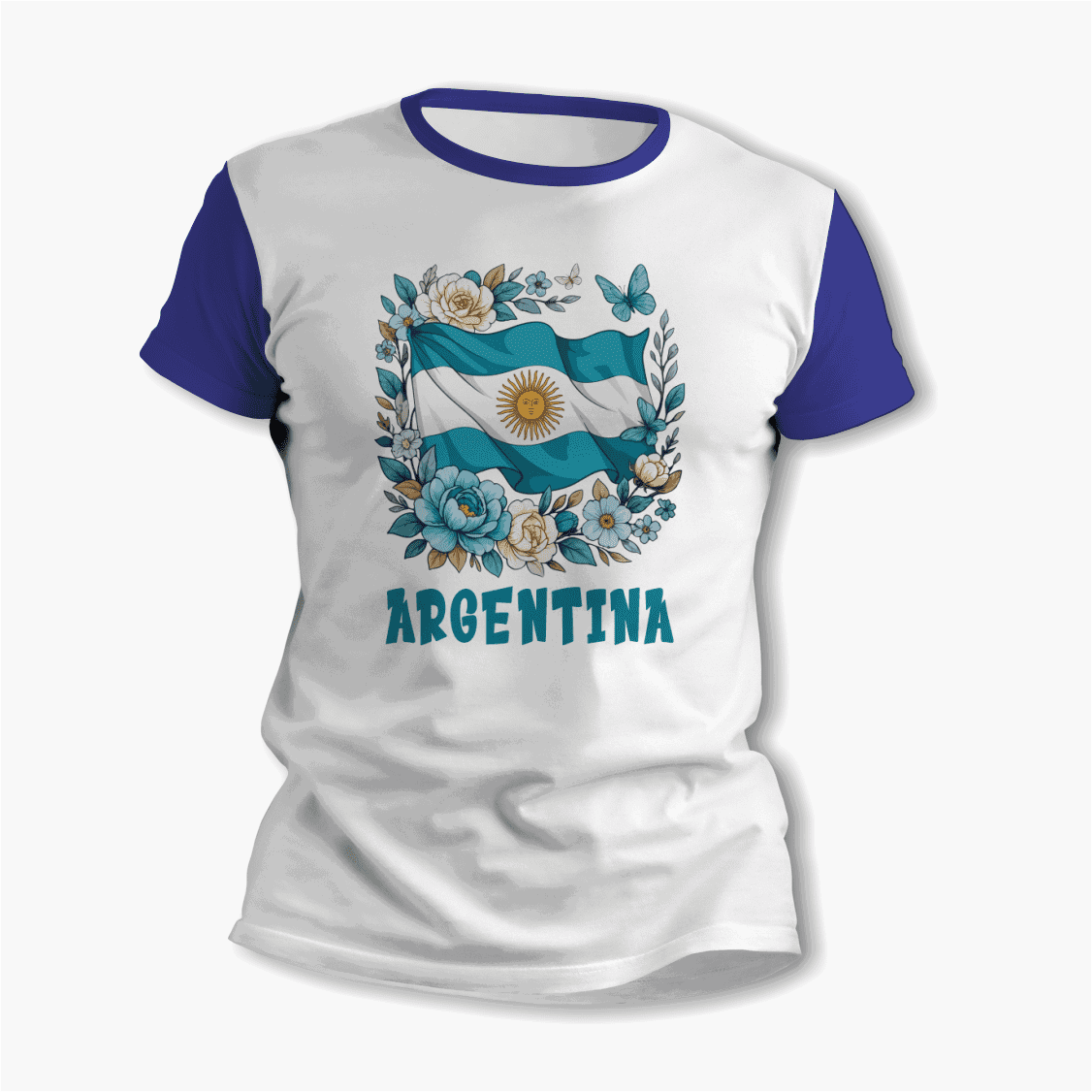 Remeras con la Bandera Argentina y Flores - Infantiles y Adultos - Envíos a todo el país.